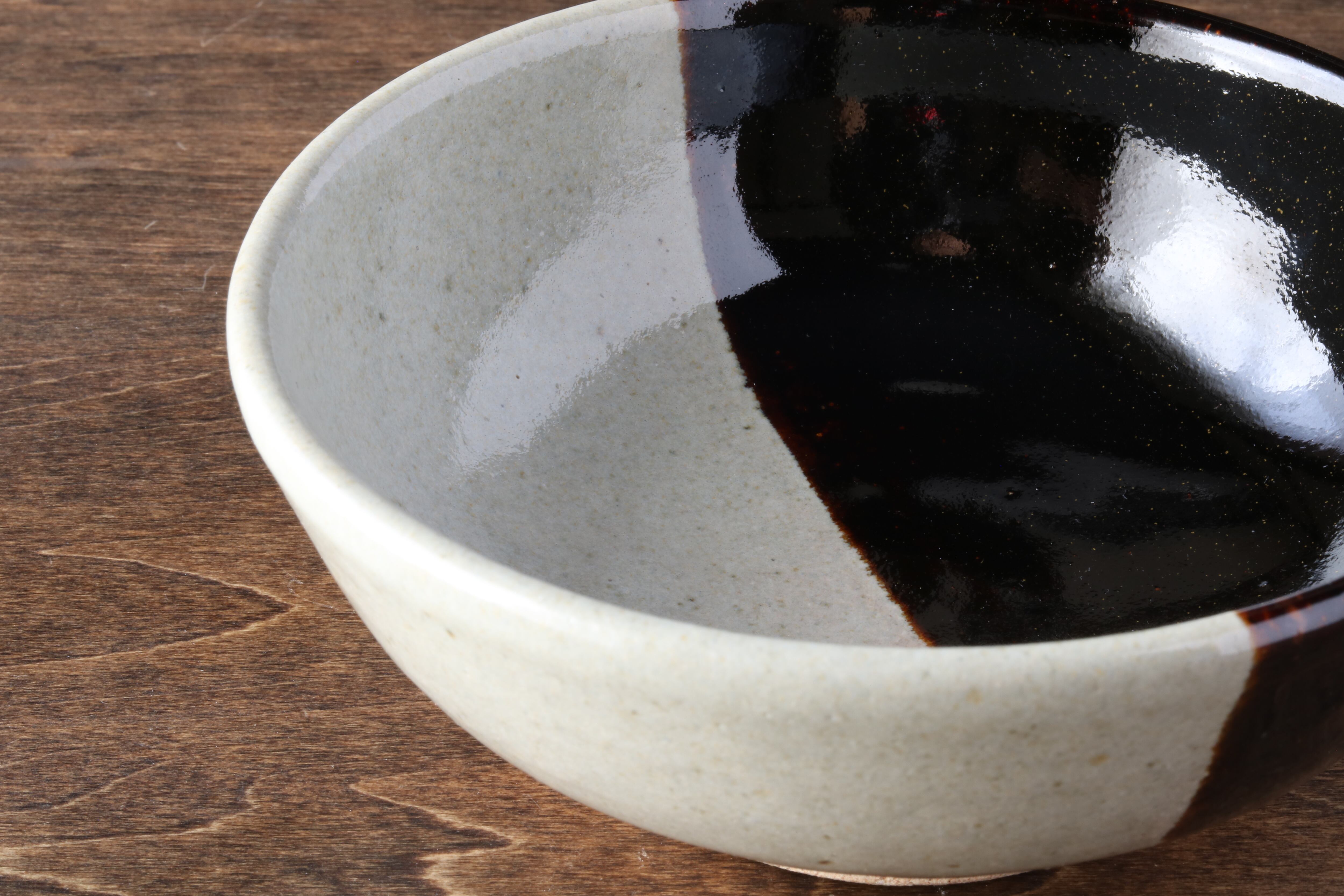 ・黒い釉薬は薄く細かい黄色の斑点があります。口縁は茶色に近い色が出ています。