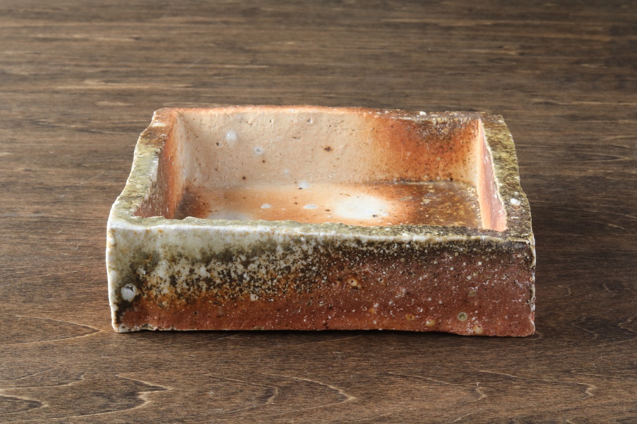 ・土の成分と薪の灰の成分が反応して自然釉になります。器を置く場所や向きによって灰のかかり方が変わります。